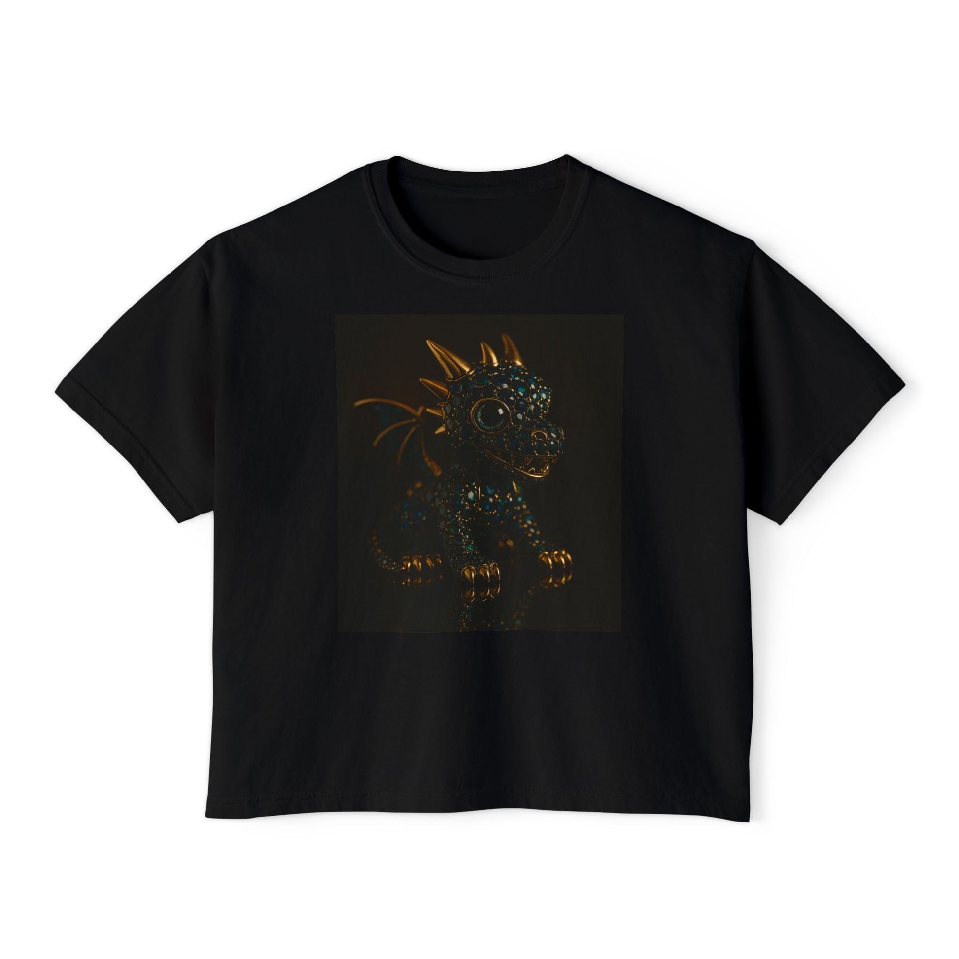 Blue Diamond Dragon Glow Boxy Tee - Cute Casual Wear for Kids & Adults, Perfect for Parties, Birthdays, Everyday Fun, Dinosaur Lovers Gift