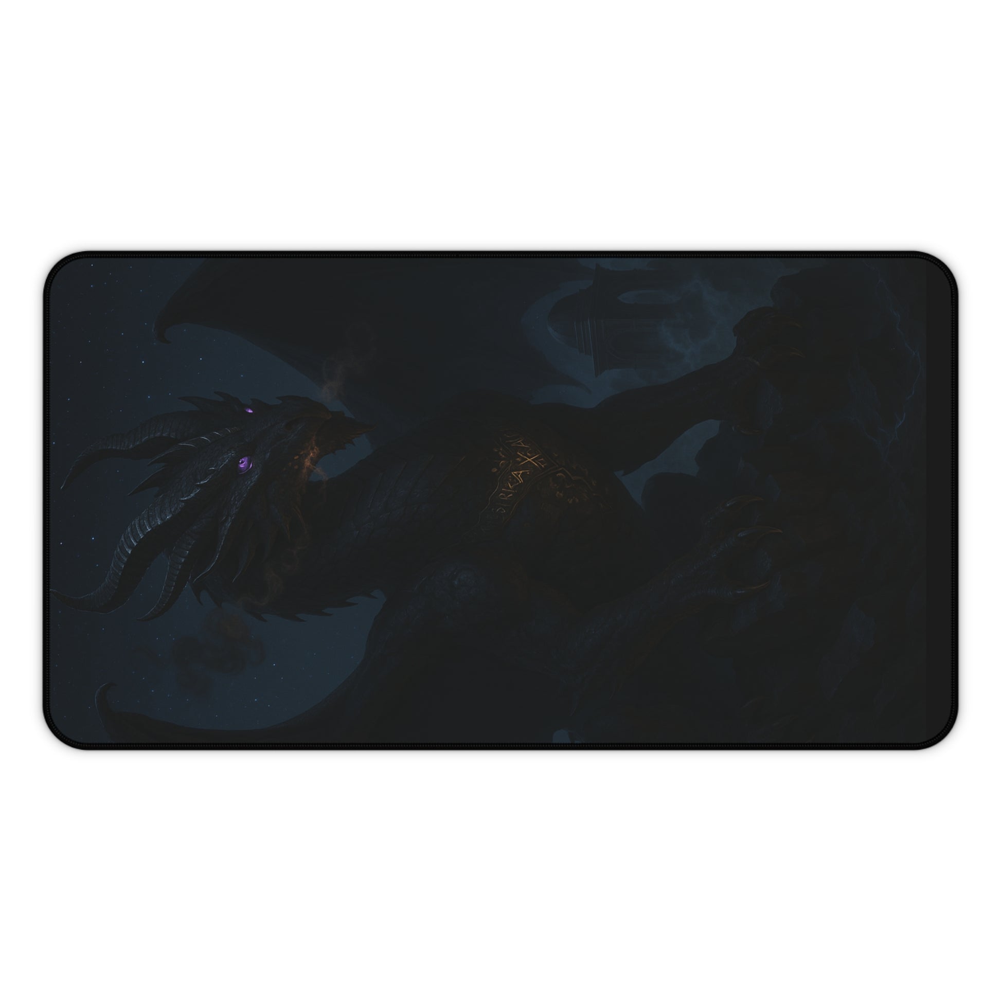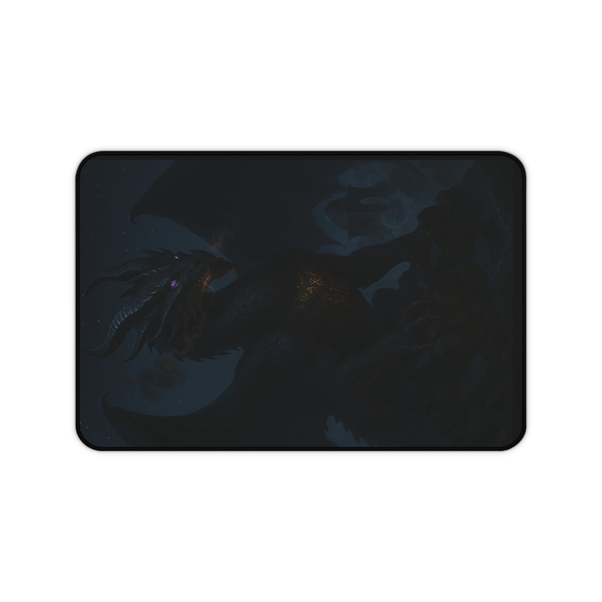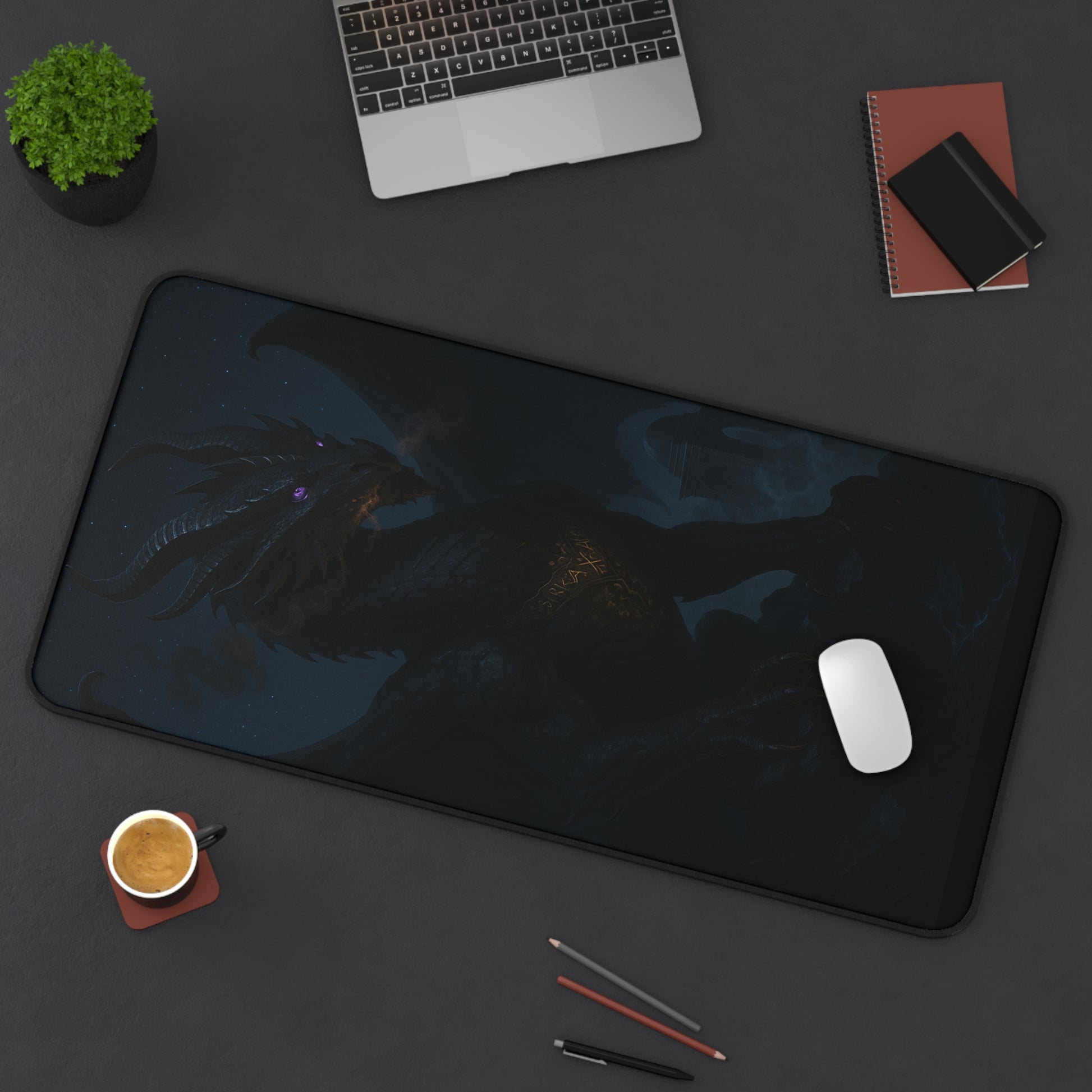 A dark dragon-themed desk mat, perfect for adding a touch of fantasy to your workspace. Ideal for dragon lovers and fantasy enthusiasts. Great for decorating your desk during Halloween or fantasy-themed events.