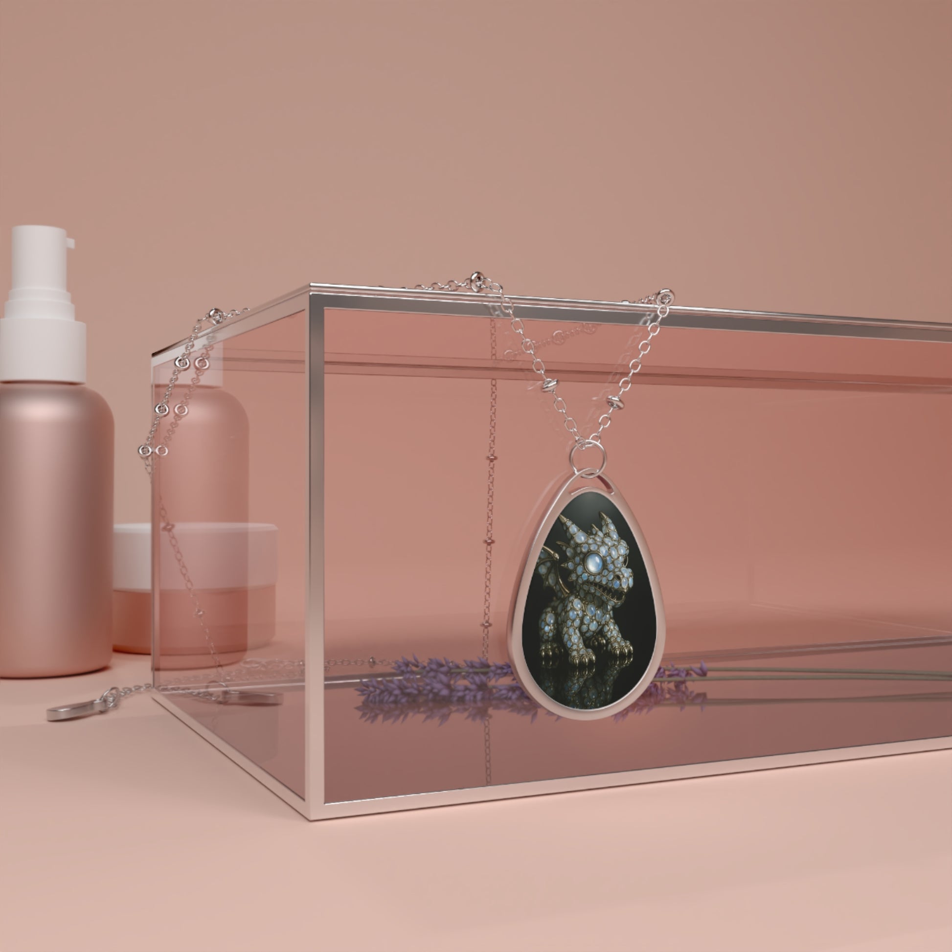 Fantasy-Inspired Oval Necklace, Magical Jewelry Gift, Dragon Pendant, Unique Statement Necklace, Ideal for Cosplay or Fantasy Lovers