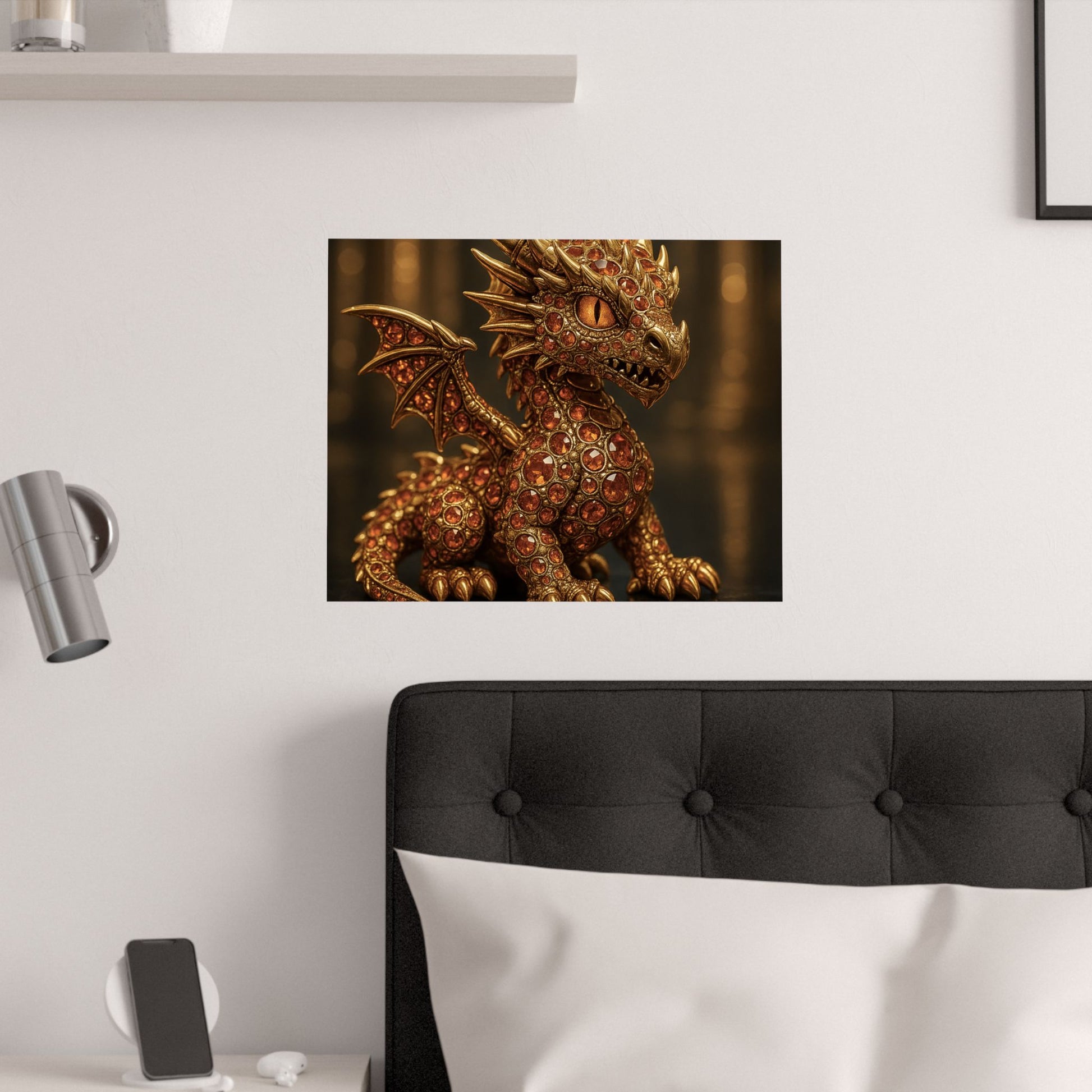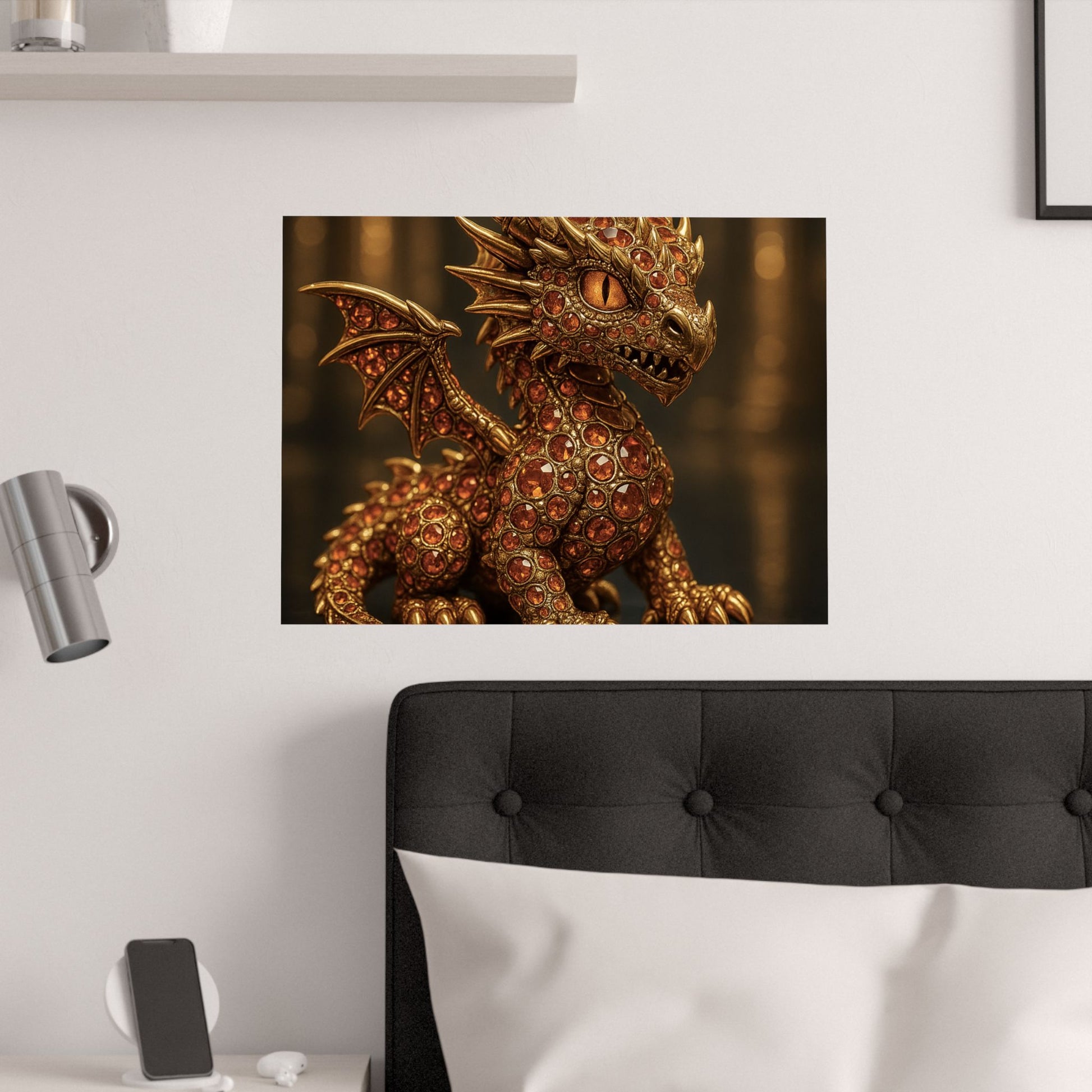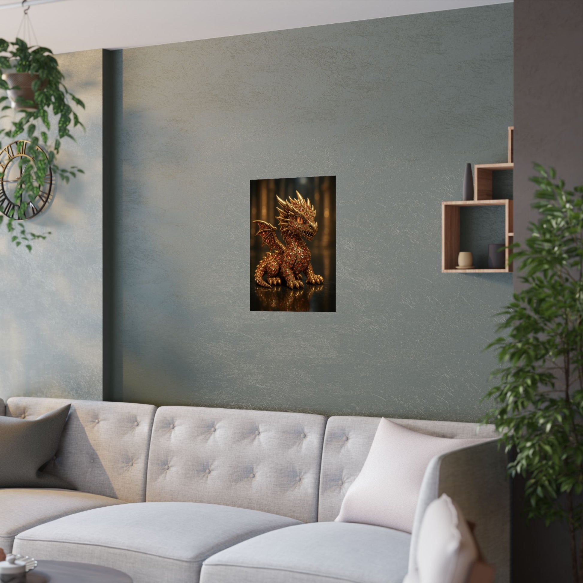Golden Dragon Art Print, Satin Poster, Dragon Wall Art, Fantasy Decor, Gift for Gamers, Dragon Lover's Decoration