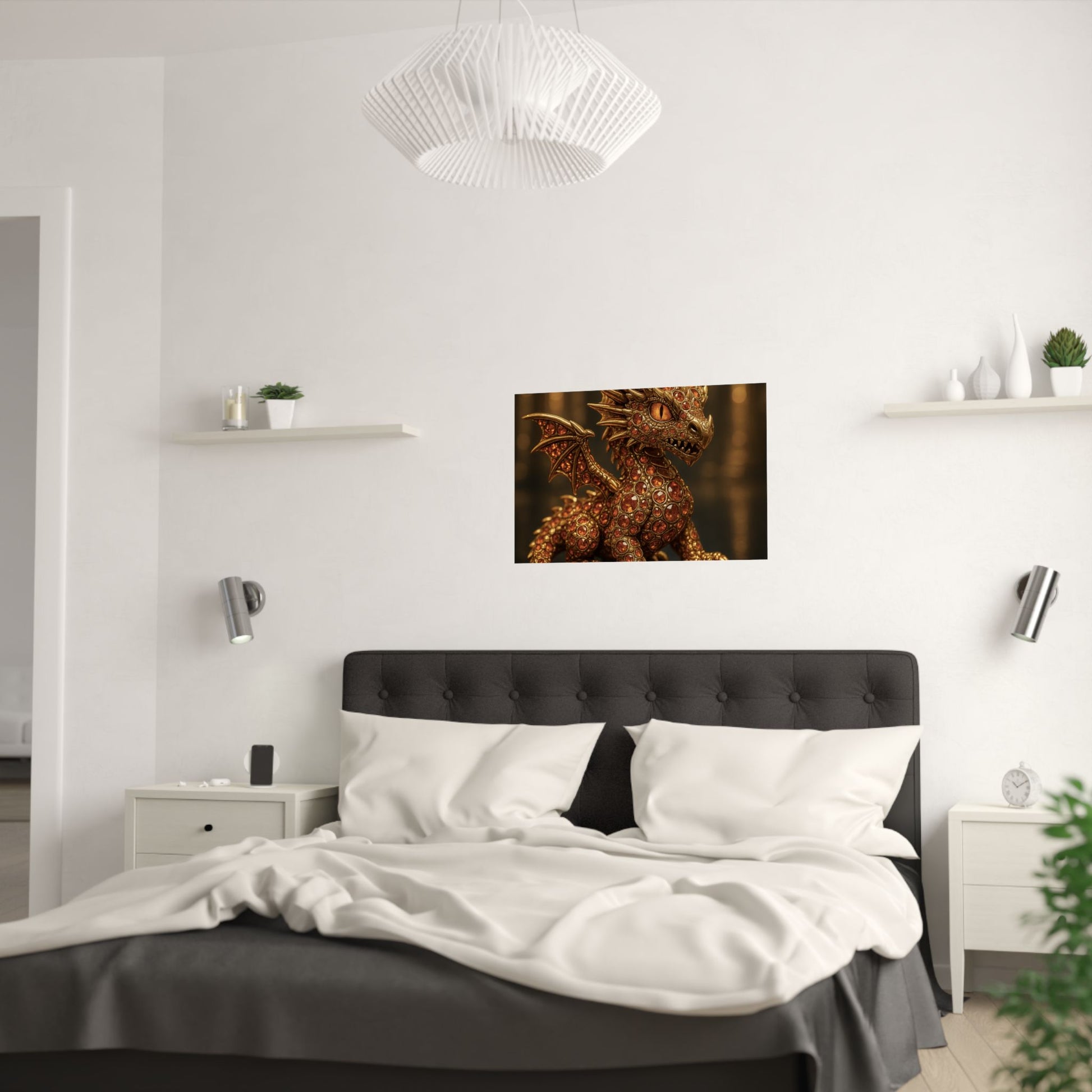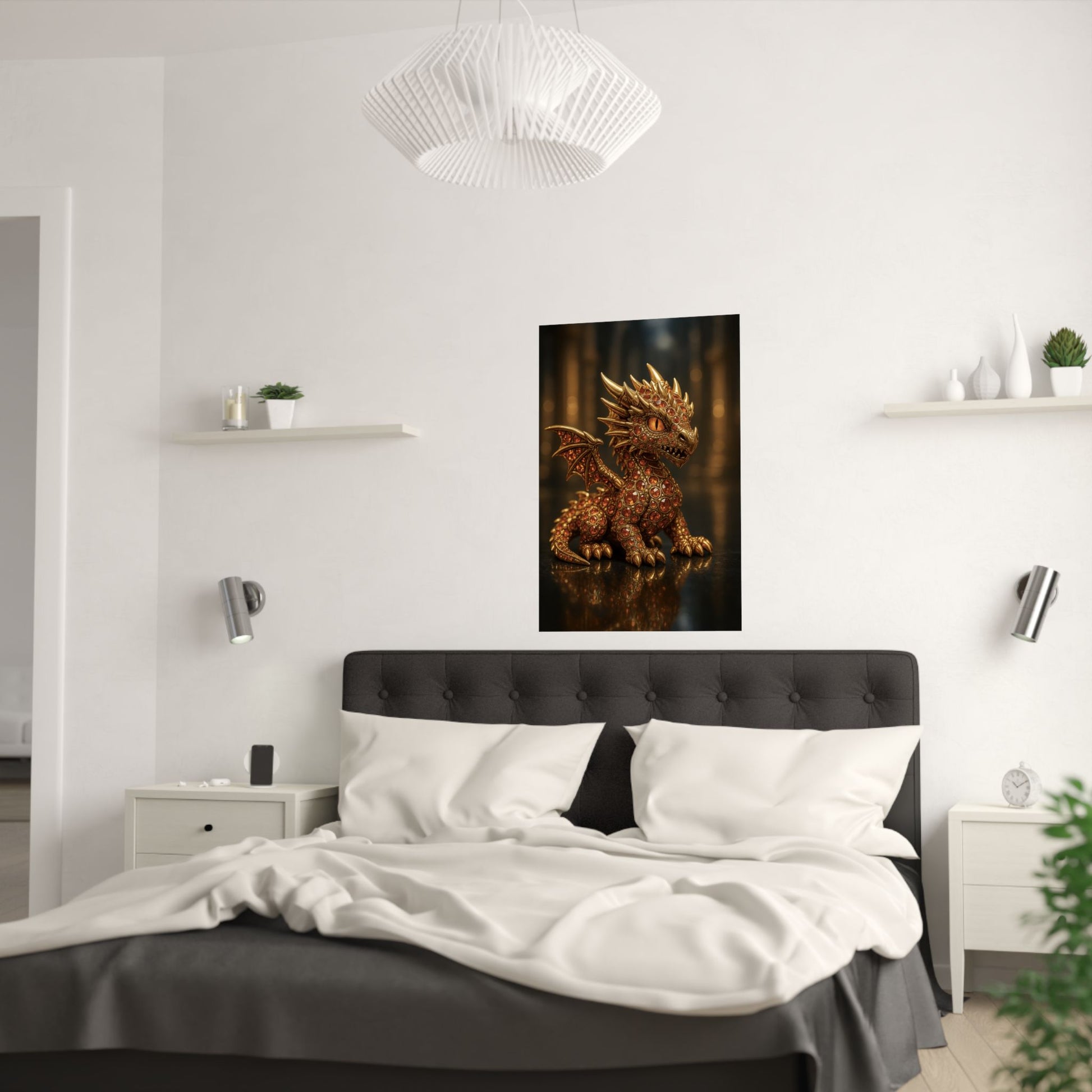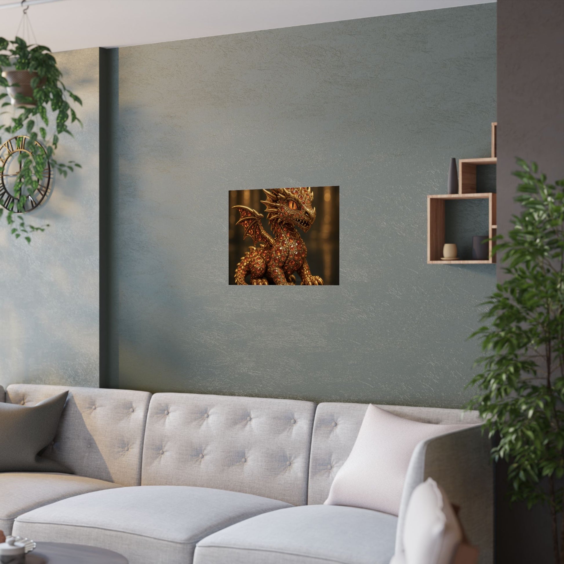 Golden Dragon Art Print, Satin Poster, Dragon Wall Art, Fantasy Decor, Gift for Gamers, Dragon Lover's Decoration