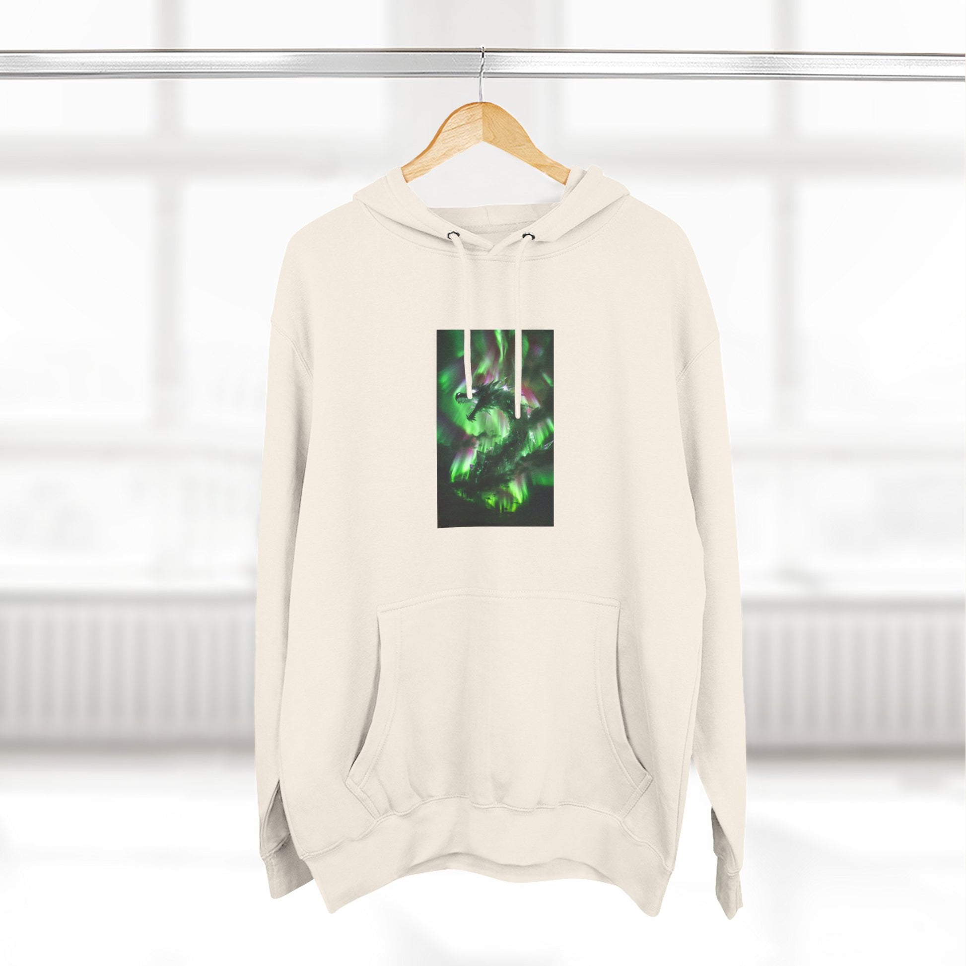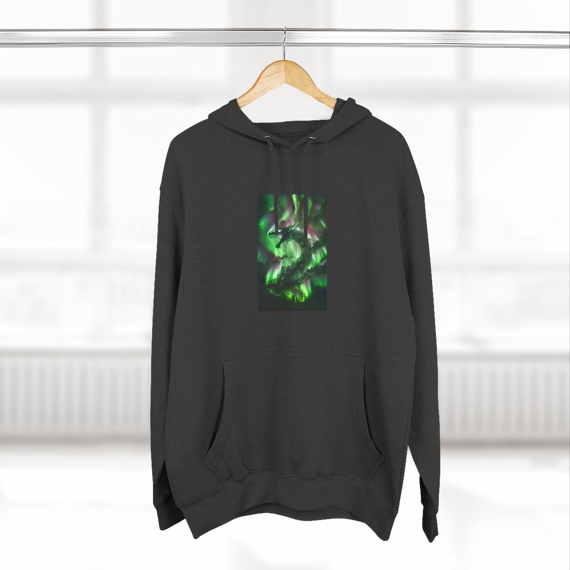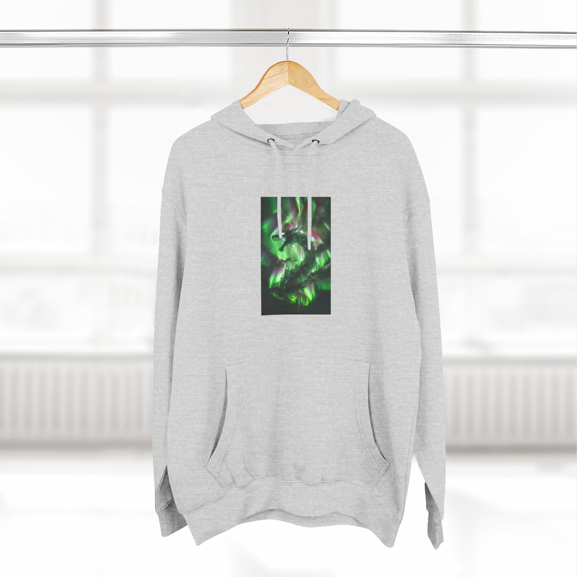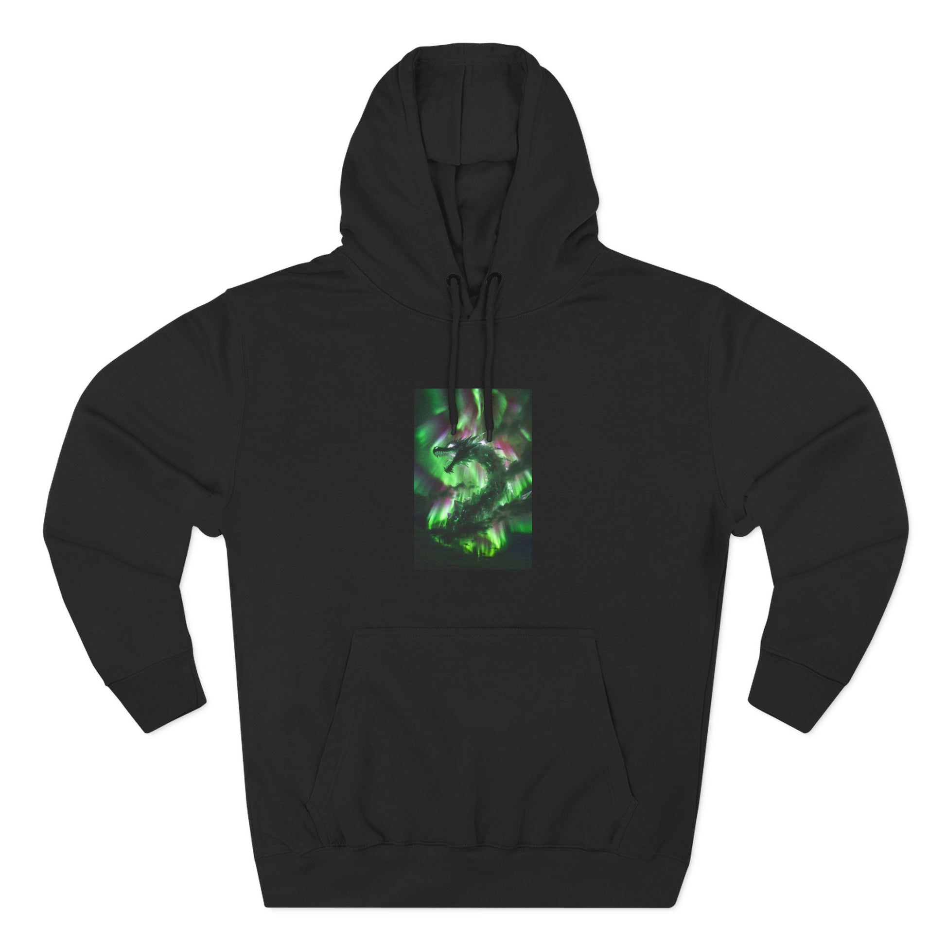 This medium-weight fleece hoodie brings an understated edge to everyday wear. The soft 3-end fleece and combed ring‑spun cotton blend feel plush against skin while holding shape through regular wear. A centered, three-panel graphic in deep greens gives the front a quietly mysterious focal point — it reads like moss-lit forest shadows or bioluminescent currents, adding personality without shouting. The roomy kangaroo pocket and adjustable hood with woven drawcords make it easy to layer on cool mornings or wear while wandering city streets late into the evening. Built with reinforced seams, twill neck tape, and minimal shrinkage, it’s designed to keep its fit and texture wash after wash.