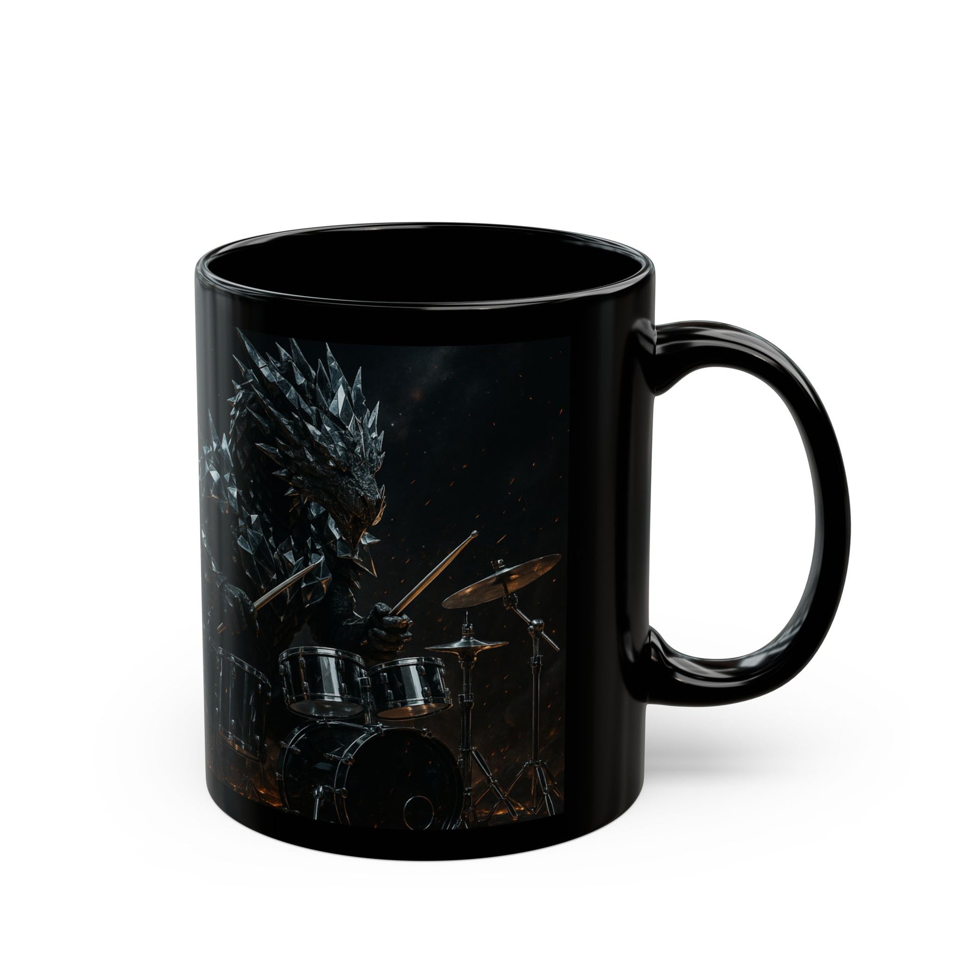 Metallic Drummer Black Mug, Unique Coffee Cup for Musicians, Rock Music Lover Gift, Fantasy Beverages Mug, Cool Drum Set Teacup