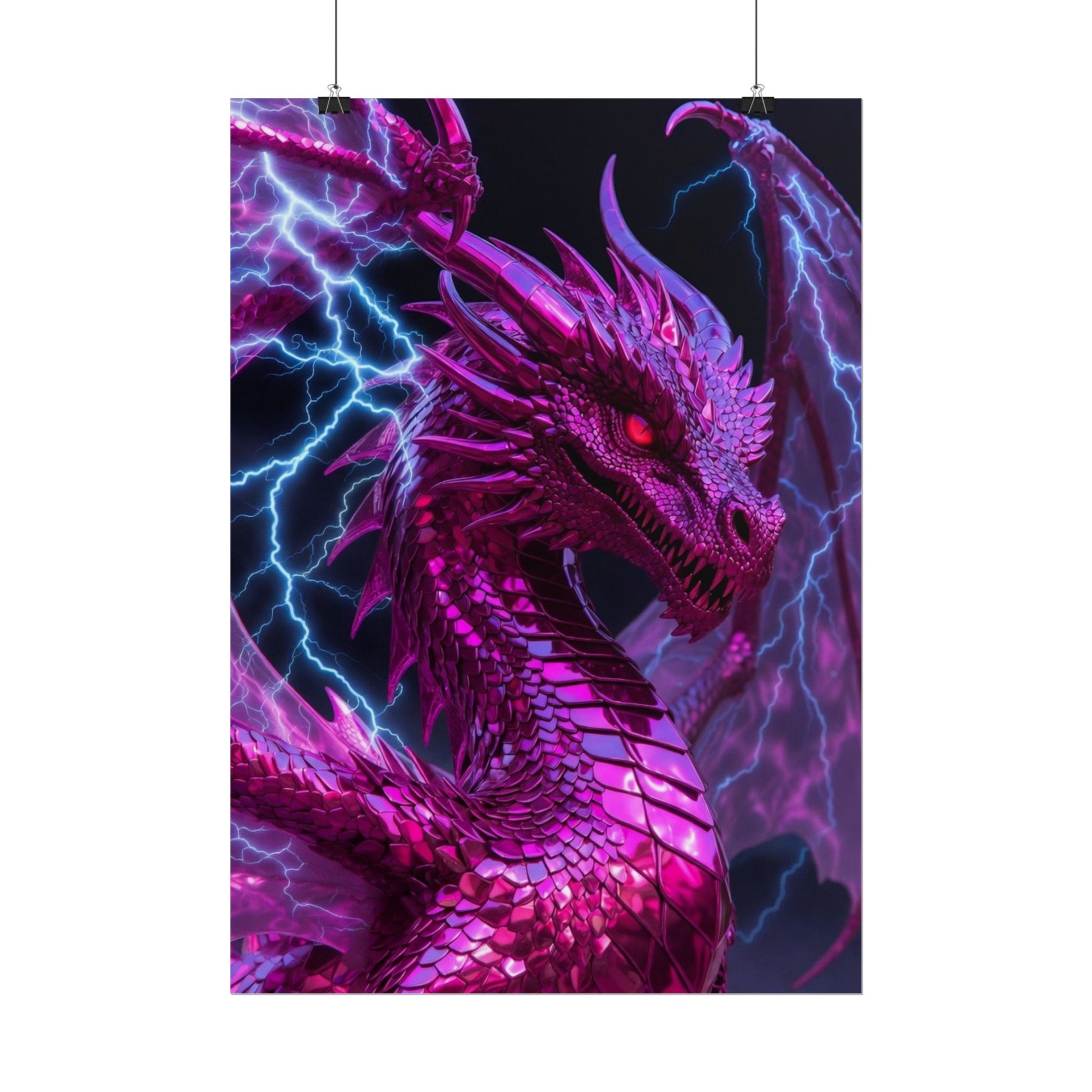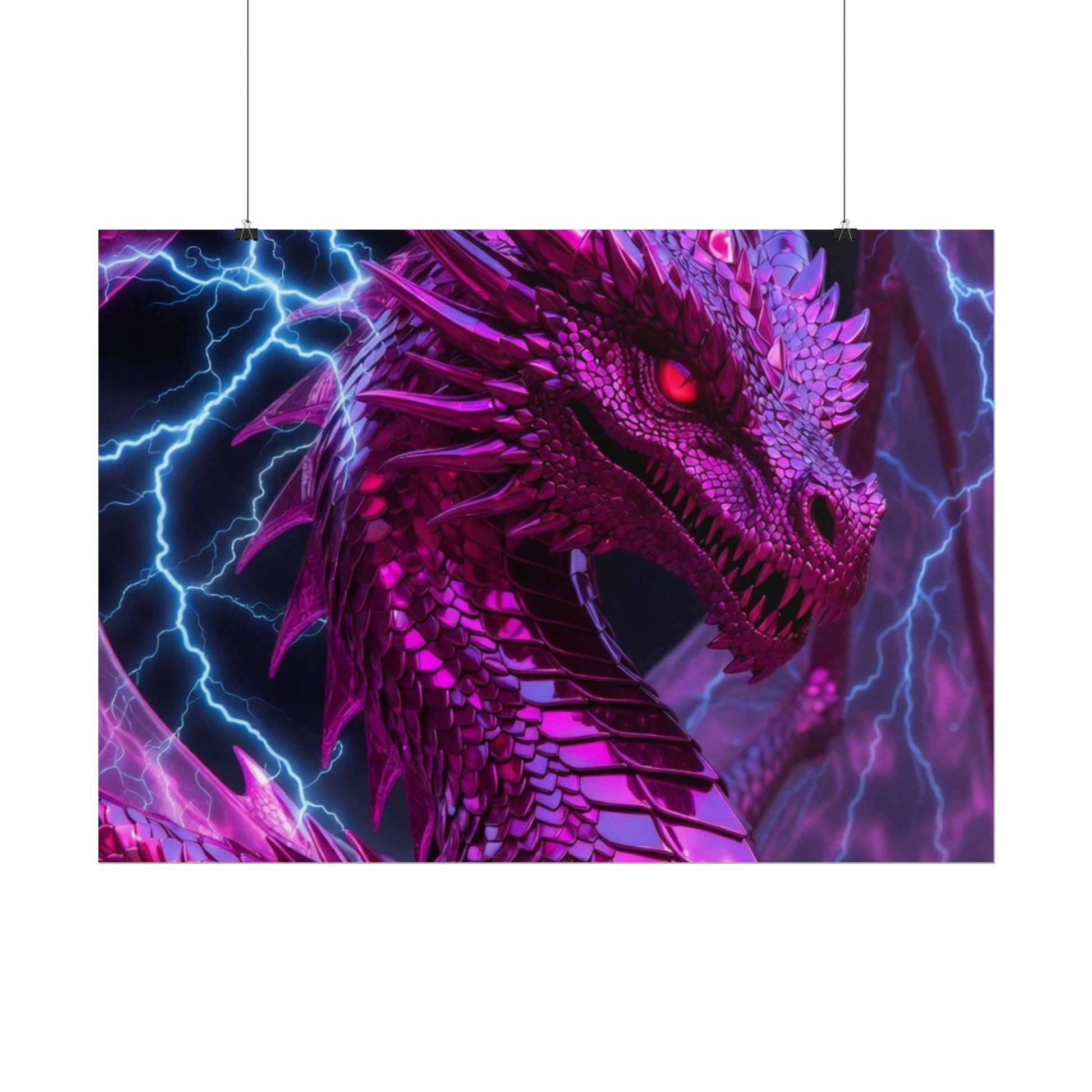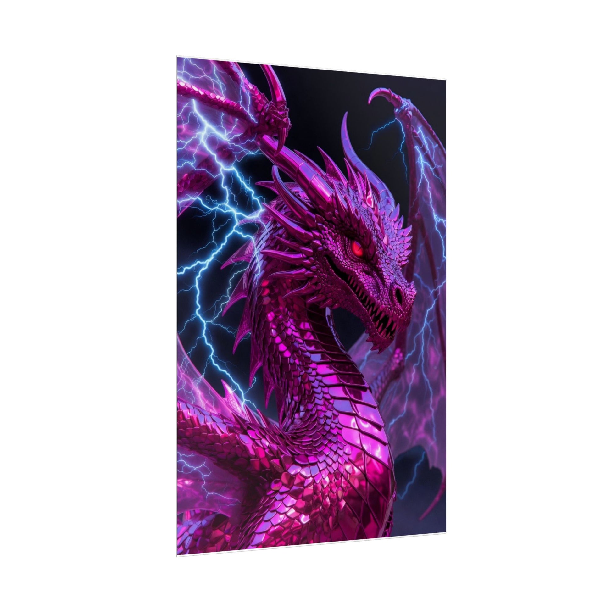 Pink Electric Dragon Poster — Fantasy Wall Art Rolled Poster