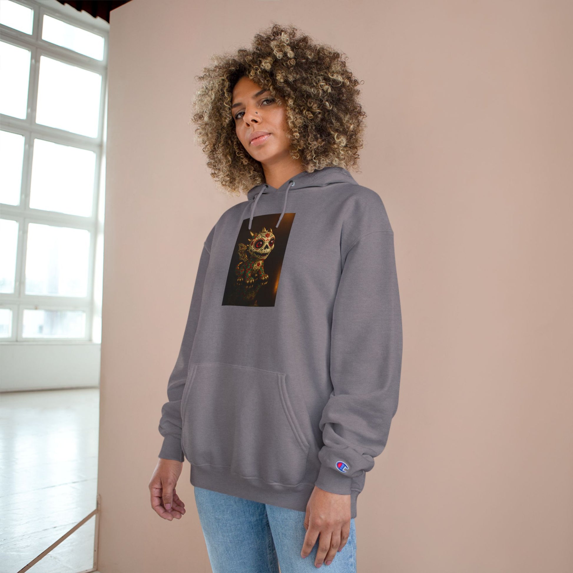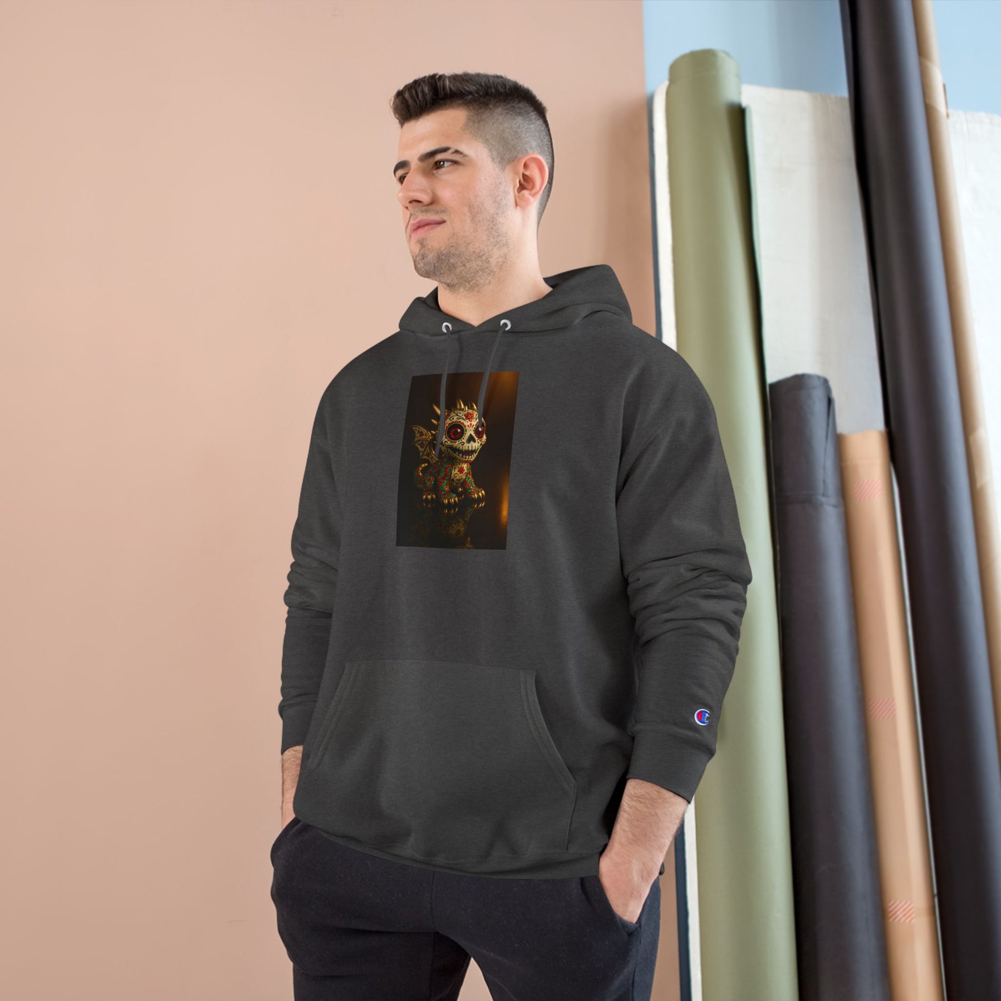 Skull Graphic Champion Hoodie, Cozy Sweatshirt, Halloween Gift, Casual Wear, Unique Design, Trendy Fashion
